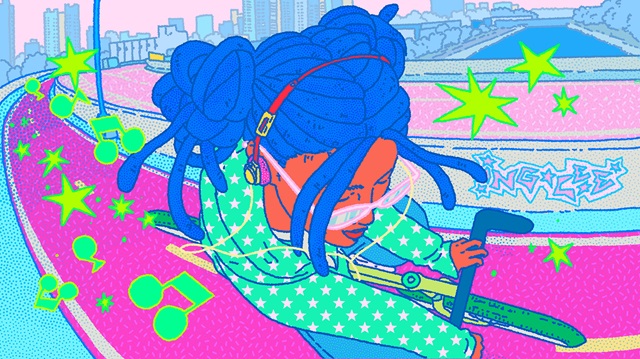 Her response centres on the city’s south side, presenting a layered portrait where metro lines, music and neighbourhood life overlap. Rather than flattening the area into a single symbol, Ing’s illustrations lean into plurality, reflecting the cultural density and creative energy that define the region.