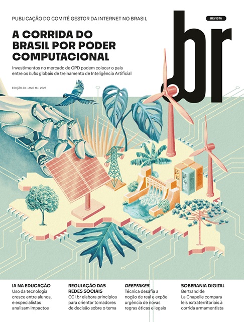 Débora created the cover and key editorial illustrations for Revista.br #23, including a portrait of Antônio Hélio Guerra, Brazil’s computing pioneer.